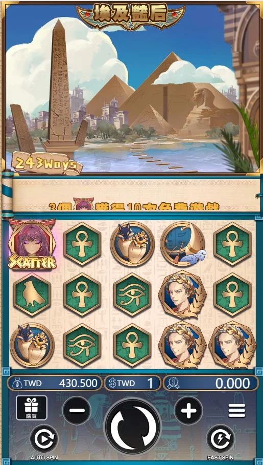 小編今天要介紹的是超受玩家歡迎的埃及豔后老虎機。這款遊戲不僅充滿古埃及文化元素,還擁有243種中獎方式,結合了高額獎金與創新玩法,讓玩家每次旋轉都能感受到獨特的刺激感!遊戲的畫面精美,象徵埃及文明的象形文字、法老面具和金字塔圖案,與獨特的百搭符號和免費遊戲功能完美結合,絕對值得你試玩!