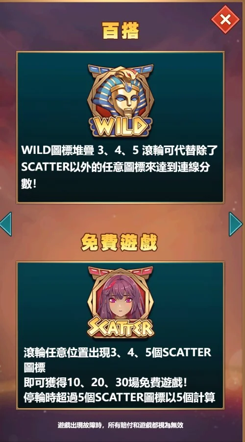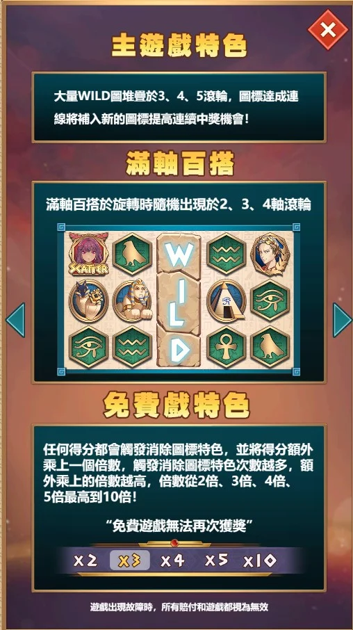 免費遊戲最多可獲得30次旋轉,而且每次旋轉還有機會提升額外的倍數,最高可達10倍!這意味著玩家在免費遊戲中能大幅增加獲得高額獎金的機會。