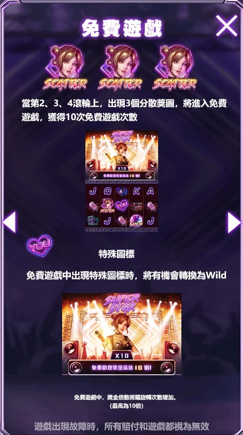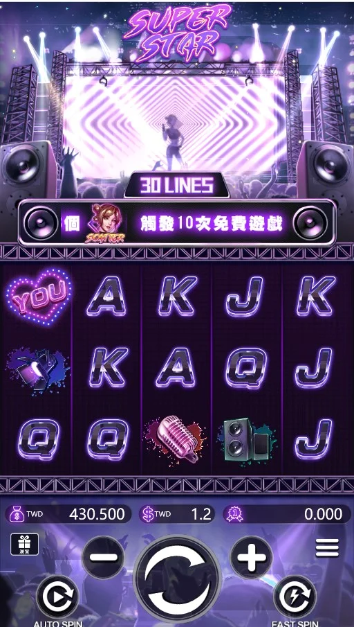 小編今天要來跟大家介紹一款充滿星光魅力的遊戲-超級巨星老虎機。這款遊戲以繽紛的燈光舞台為背景,結合音樂與炫目的特效,讓玩家彷彿置身於超級巨星的演唱會現場!現在就跟著小編一起看看這款遊戲的特色以及專屬的贏錢技巧,讓你迅速從新手變成專業玩家,享受中獎的無比快感!
