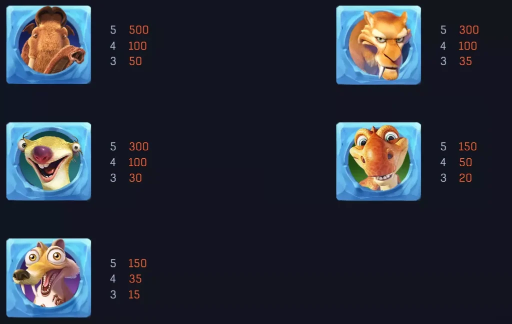 冰川時代》採用243條賠付線設計,玩家不必拘泥於特定線條,只需從最左側轉軸開始,連續出現三個或以上相同圖案即可獲得獎勵。這種連線機制使遊戲簡單易懂,同時增加了連線機率與中獎可能性。