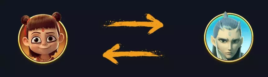 《魔童降世》的核心亮點在於哪吒與小白龍的特殊圖標互動機制。在主遊戲的旋轉中,這兩個符號有機會隨機觸發特效:當哪吒或小白龍單個符號中獎時,同屏內的兩者符號會隨機轉換為一致的哪吒或小白龍符號,並重新判定中獎情況。這種動態轉換機制為玩家創造了更多的中獎機會,讓遊戲過程更加刺激。