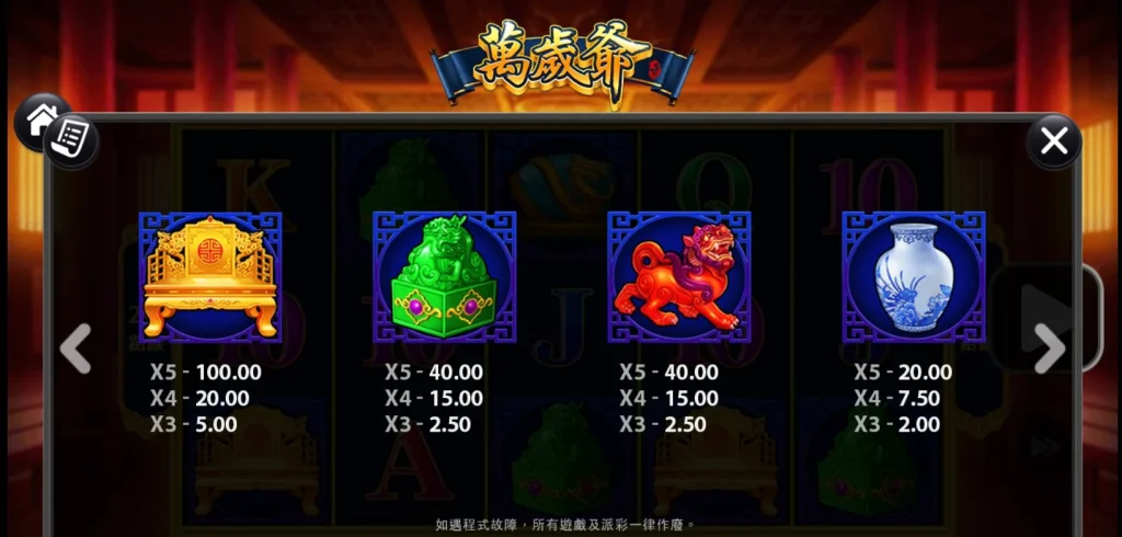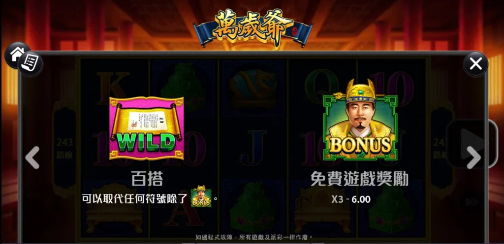 整體來說,小編認為萬歲爺是一款非常值得一試的老虎機遊戲。不僅畫面精美,音效也非常到位,讓人彷彿置身於古代皇宮的氛圍中。此外,243路線的設計確實提升了中獎機會,讓玩家在遊戲中更有成就感。