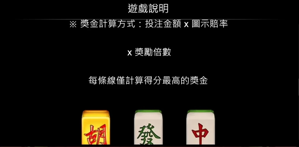 最後是黃金麻將遊戲中融入了麻將牌的圖示,包括「中」、「發」、「八萬」等符號,讓玩家在熟悉的麻將元素中感受到親切感。同時,麻將牌的連線方式與老虎機玩法完美結合,帶來耳目一新的娛樂體驗。