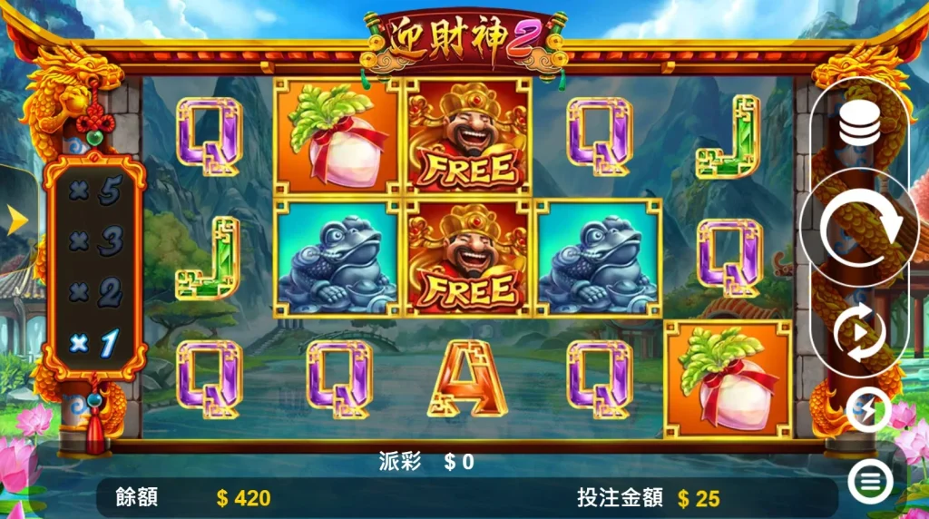 迎財神2非常適合新手玩家和資深玩家。對於新手來說,遊戲的20條固定支付線讓中獎機會穩定,而對於老玩家來說,遊戲的高倍數機制和免費遊戲功能則提供了挑戰和高額收益的可能性。