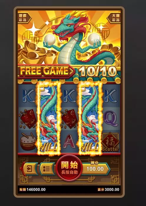 在免費遊戲中,隨機觸發的「神龍降臨」機制將提升獎金倍率與中獎率,使玩家感受到龍珠飛舞、財源滾滾的歡樂氣氛。此外,分散符號再出現時,每增加3個符號即可額外贈送5次免費遊戲,最多可累積到100次免費旋轉,大大提高玩家的贏獎潛力。