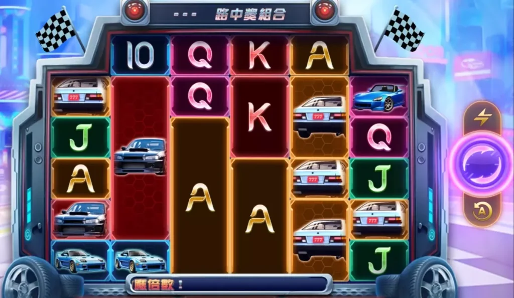 動態燈光與聲效模擬引擎轟鳴聲與飆速感,營造身歷其境的遊戲氛圍。各種符號轉換與特效動畫增添視覺層次,吸引玩家沉浸於遊戲世界中。