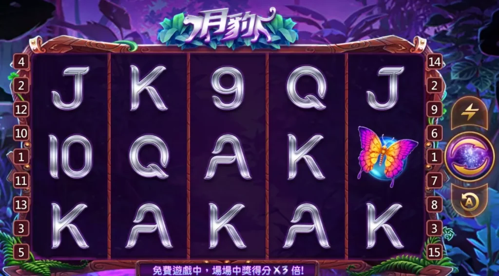 月豹以叢林奇幻與神秘黑豹為核心設計,將玩家帶入危機四伏又充滿機會的原始森林探險之旅。畫面設計展現出月光灑落叢林的夢幻效果,搭配強烈的動物圖騰與神秘色彩,營造出刺激而緊張的氛圍。