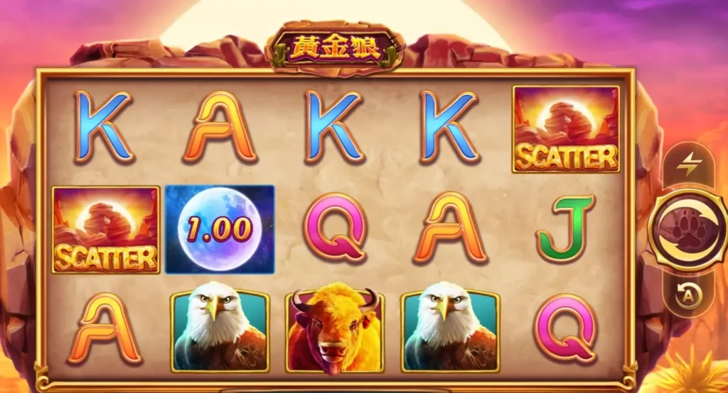 黃金狼採用5軸4行設計,並擁有25條固定連線方式,讓玩家能輕鬆掌握中獎機會。從第1軸開始向右連續三個相同符號即可獲得獎金。搭配百搭與分散符號,提升中獎機率與額外獎勵機會。分散符號不需連線,只要達到指定數量,即可觸發免費遊戲或其他特殊功能。