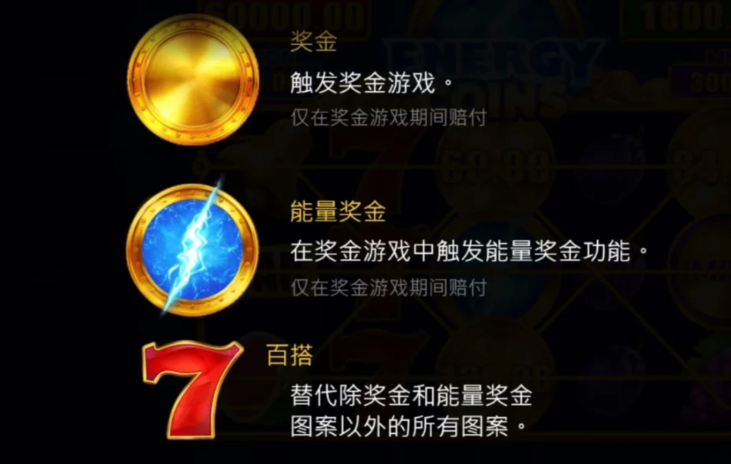 能量獎金圖案是遊戲的一大亮點。當它掉落時,不僅會保留在捲軸上,還會收集整個卷軸上的所有價值,包括迷你獎、小獎和大獎的圖案值,將這些累積的獎金一次性計入總獎金中。