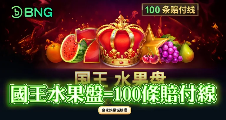 【BNG電子】國王水果盤100條賠付線老虎機最新介紹,教你贏家的成功秘訣!